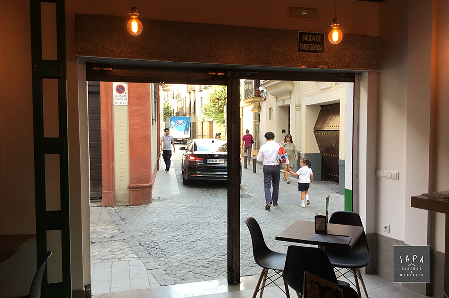 Hace unos meses un cliente nos llamó para dar mayor funcionalidad a la entrada de su restaurante. En ese momento el local solo tenía cierre de seguridad, por lo que al abrir no solo podía tener problemas del ruido de la calle, también se enfrentaba a un mal aislamiento del frío y el calor.